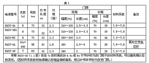 近幾年來我公司根據(jù)市場的需求大量紡竹節(jié)紗,為了清除大于竹節(jié)幅度的紗疵,使生產(chǎn)和質(zhì)量兩不誤,電子清紗器的各種參數(shù)設(shè)定很重要,尤其是門限設(shè)定更為重要。我公司使用陜西長嶺紡織機(jī)電有限公司的DQSS-4A、DQSS-8G、DQSS-16A等各種型號的電子清紗器,在運(yùn)用這些型號的電子清紗器絡(luò)低支竹節(jié)紗中,總結(jié)了點(diǎn)滴經(jīng)驗(yàn)供大家參考。