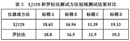 3  XJ129棉結和短絨測試儀測試結果和手工測試方法結果對比