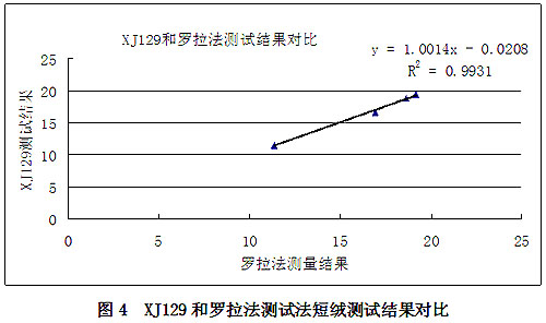 使用國家標準棉花,我們用XJ129棉結和短絨測試儀測試和手工測試方法分別進行測試,兩種測試結果基本一致(見表2和圖4)。