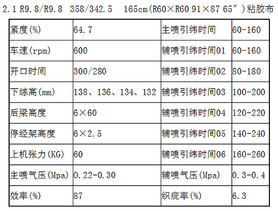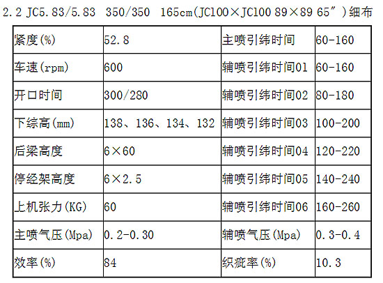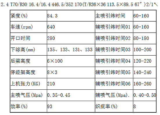 2011年4月8日我公司安裝了8臺(tái)陜西長(zhǎng)嶺紡織機(jī)電科技有限公司生產(chǎn)的CA082-190-2C-ZC4-E型噴氣織機(jī),在生產(chǎn)運(yùn)行期間,我公司的工程技術(shù)人員對(duì)該機(jī)型的性能特點(diǎn)、工藝性及品種的適應(yīng)性進(jìn)行了生產(chǎn)運(yùn)行測(cè)試,先后在該機(jī)型上生產(chǎn)了滌粘嗶嘰、高支粘膠、精梳純棉系列從稀薄到較厚重等織物品種,該機(jī)型有較高的品種適應(yīng)性,并且運(yùn)行穩(wěn)定。