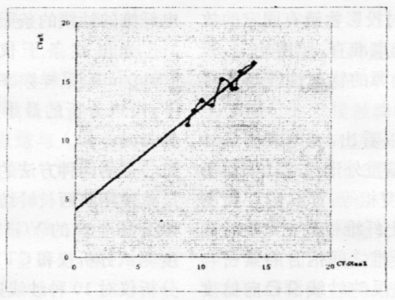 通過對測試結(jié)果的回歸分析(參見圖3),可得出如下的相關(guān)關(guān)系表達式: