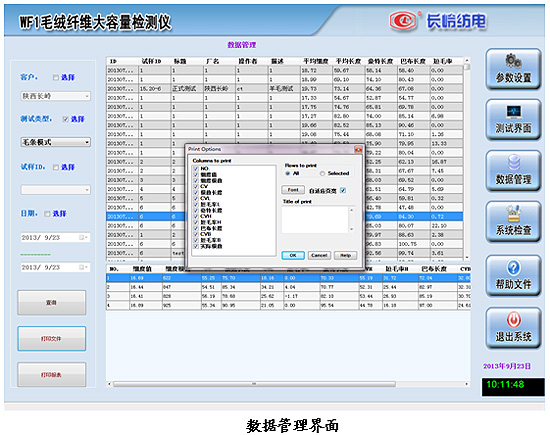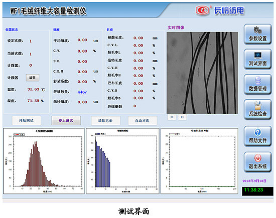 該儀器是羊毛、羊絨纖維性能綜合測(cè)試儀器。它測(cè)試速度快、取樣量大、輸出指標(biāo)多。在較短時(shí)間內(nèi)能檢測(cè)出毛絨纖維的細(xì)度、長(zhǎng)度等性能指標(biāo),輸出直徑、直徑CV值、根數(shù)長(zhǎng)度、豪特長(zhǎng)度、巴布長(zhǎng)度、長(zhǎng)度CV值、短毛率等15項(xiàng)指標(biāo)??梢詽M(mǎn)足我國(guó)毛絨纖維質(zhì)量檢驗(yàn)體制改革儀器化的需要。這種儀器對(duì)纖檢機(jī)構(gòu)公正檢驗(yàn)毛絨纖維質(zhì)量和毛絨纖維生產(chǎn)、貿(mào)易過(guò)程中評(píng)價(jià)品質(zhì)具有十分重要的意義,對(duì)毛紡織企業(yè)掌握毛絨纖維性能、確定工藝參數(shù)和科研機(jī)構(gòu)研究等都具有重要作用。